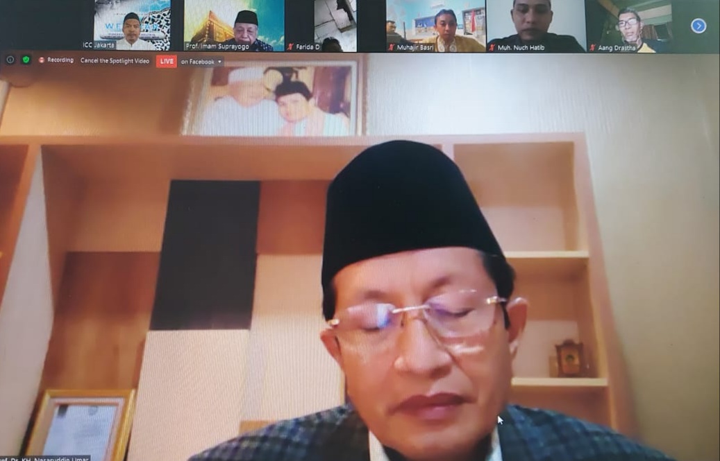 Imam Besar Masjid Istiqlal Jakarta, Prof. Dr. K.H. Nasaruddin Umar, M.A. dalam penyampaiannya di Webinar “Pendekatan antar Mazhab; Urat Nadi Kemajuan Umat Islam Masa Depan (In Memoriam of Ayatullah Ali Taskhiri)” yang diadakan ICC Jakarta dan PUSKABI Selasa (29/9) mengucapkan belasungkawa atas wafatnya Ayatullah Ali Taskhiri.